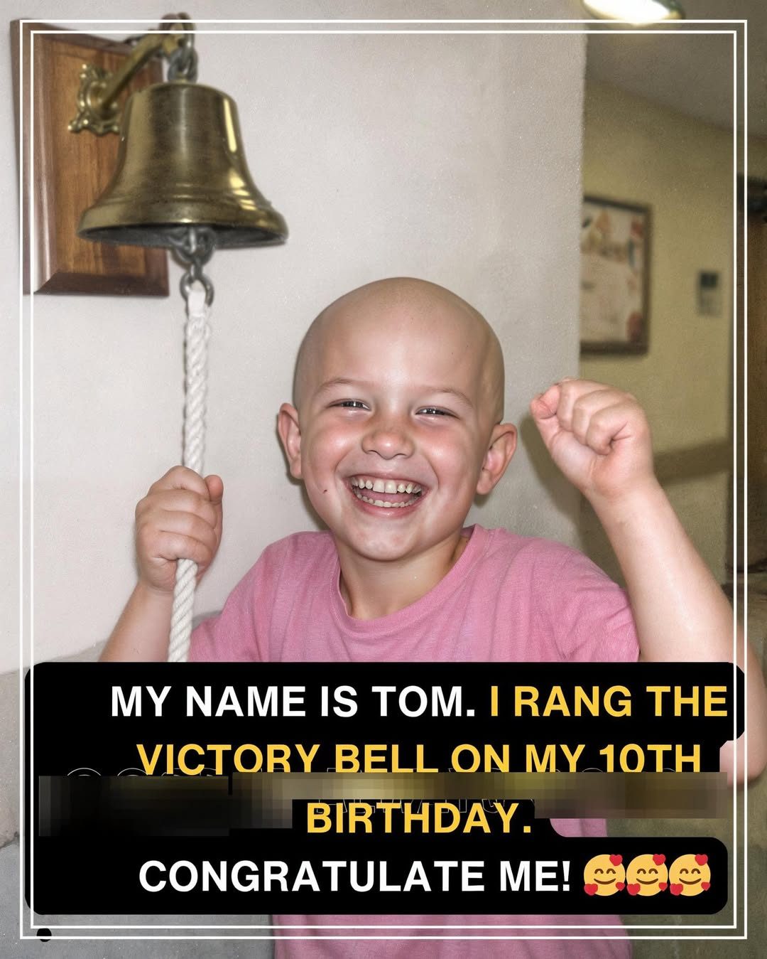 On his 10th birthday, Tom stood in a hospital hallway and rang the victory bell — not for perfection, but for perseverance.