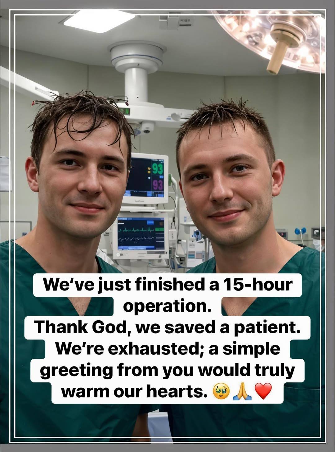 After 15 long hours in the operating room, this team finally stepped back — exhausted, focused, and deeply grateful. 🏥⏳
