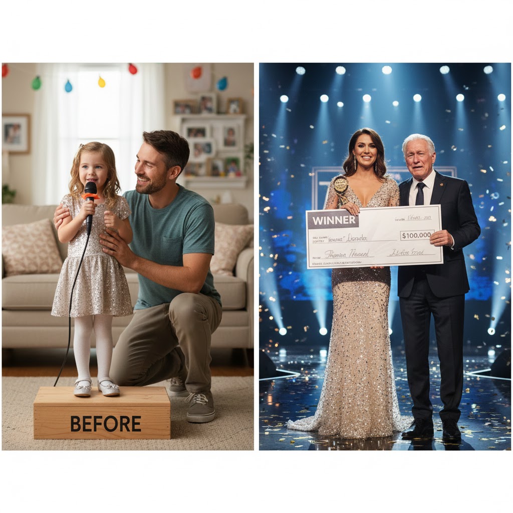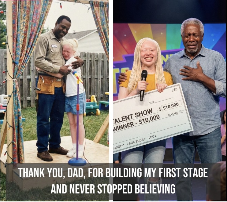 Instead, he built one 🪵🌿 — a small wooden platform in our backyard where I learned to stand tall, hold a microphone 🎤, and let my voice exist without fear.