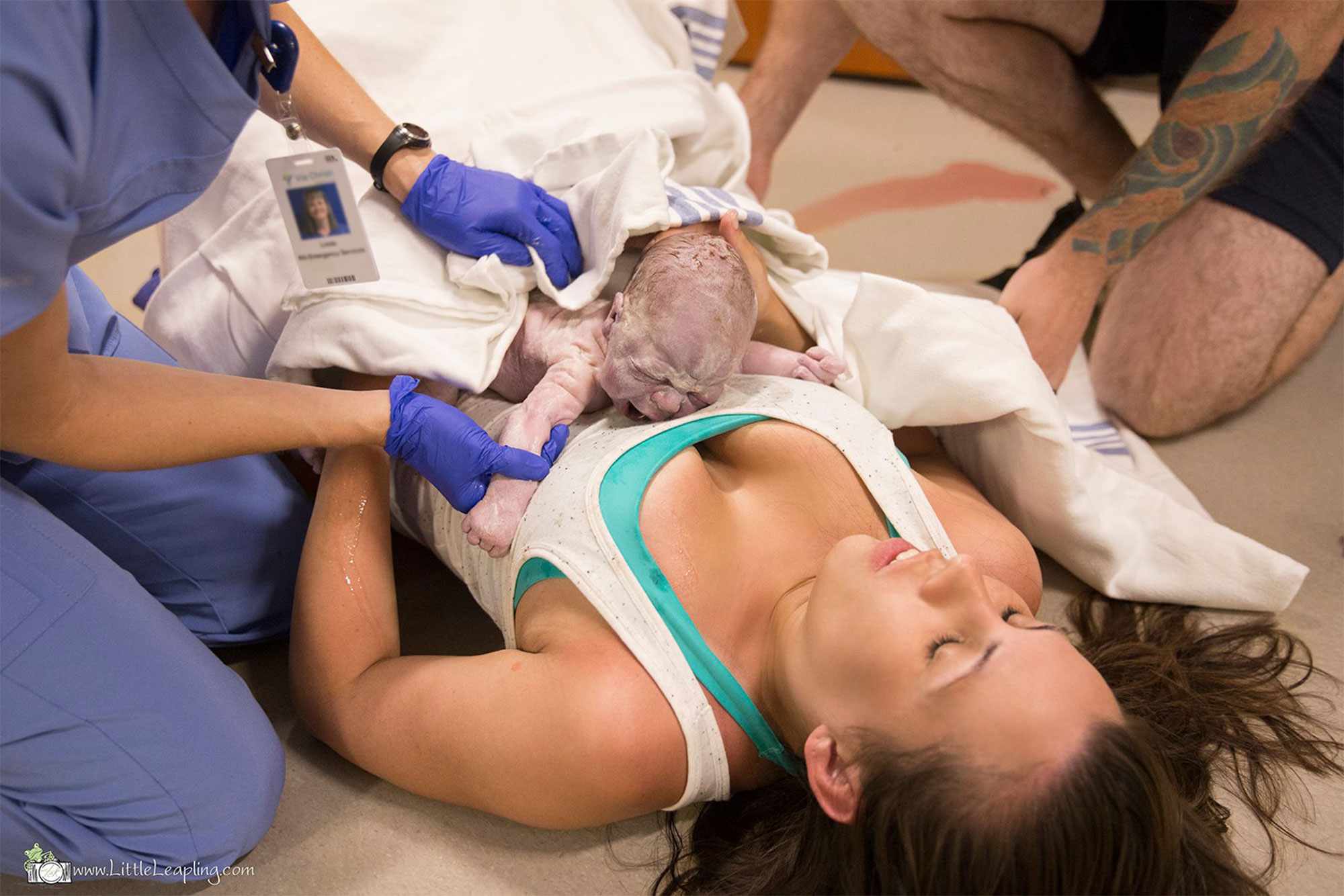 In a heart-pounding rush to the hospital, Jesica felt her baby crowning. Barely inside the doors, she cried out: “Travis, catch him!”